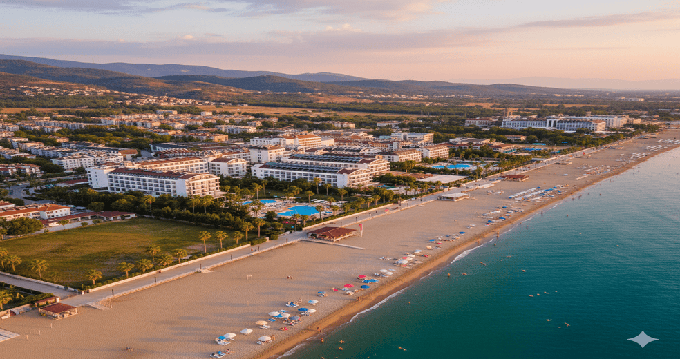До аэропорта Газипаша (GZP): Примерно 38–40 км (40 минут на машине).